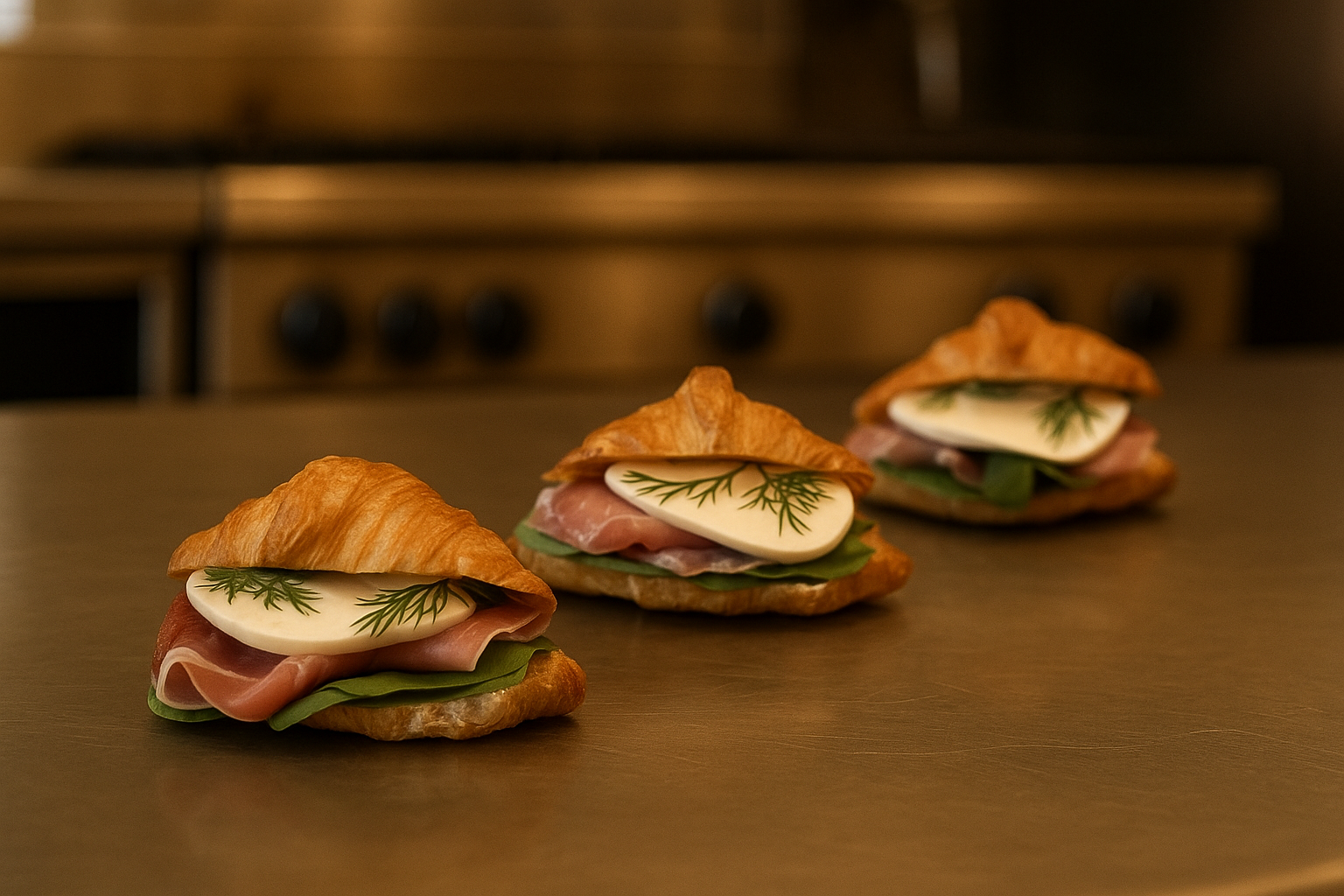 Kruasanas su pesto, serano kumpiu, salotomis ir mocarella Užsakymus priimame telefonu arba el. paštu. Susisiekite!